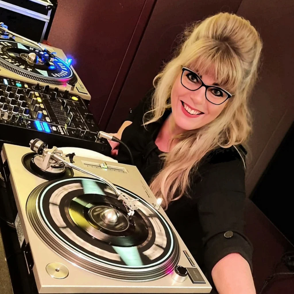 Met haar onuitputtelijke verzameling 45 toeren singles uit de jaren ’50 t/m ’80 -en enkele uitschieters naar de jaren ’90- in combinatie met haar unieke gevoel voor sfeer, tovert zij elk evenement om in een belevenis!
